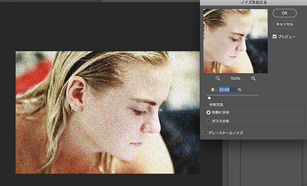 ノイズを加えすぎると画像が荒くなってしまうので、少量でオッケーです。